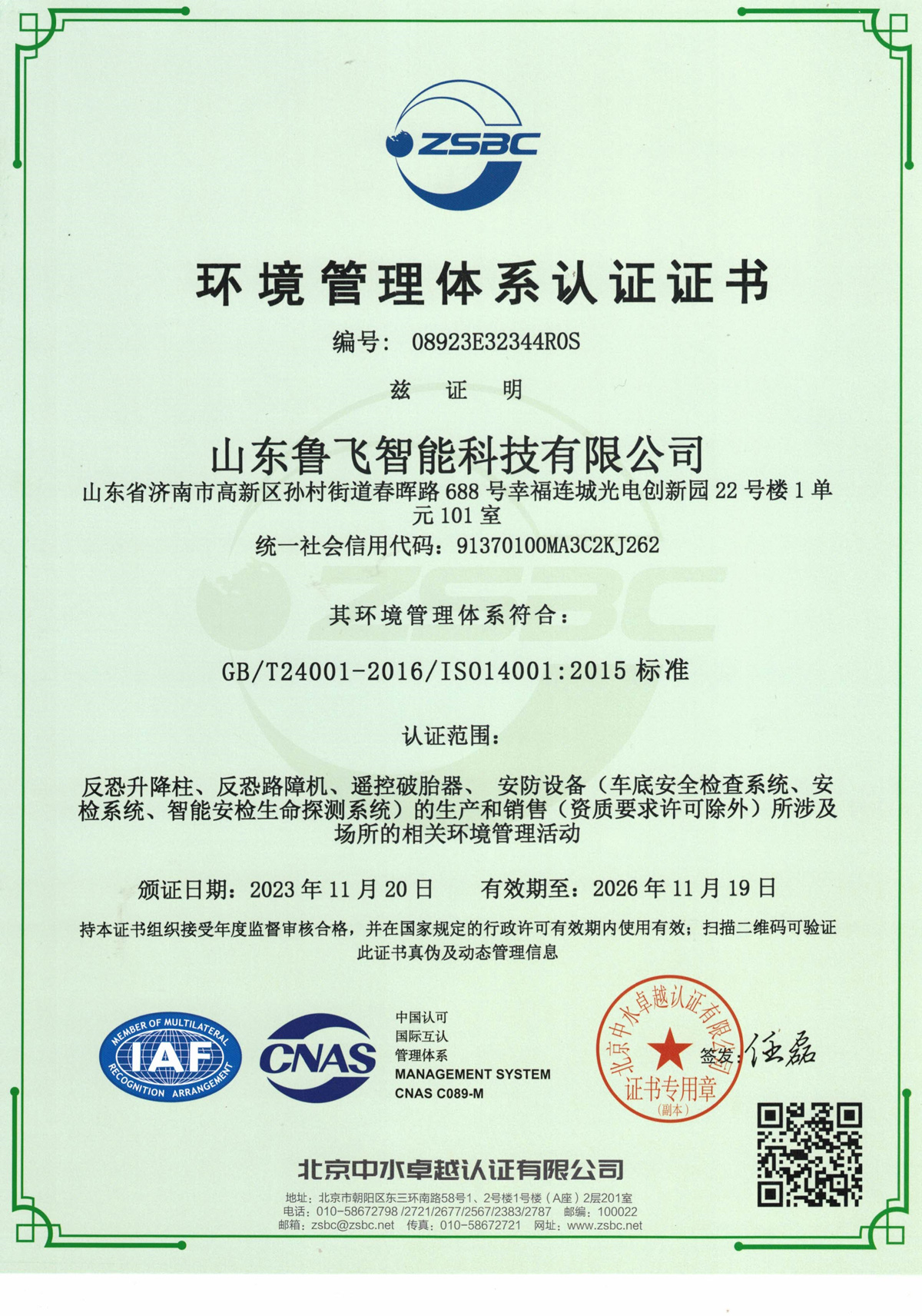 魯飛智能科技有限公司是集“設計、研發(fā)、生產、銷售”為一體的高新技術企業(yè)。專業(yè)從事反恐防暴升降路樁、防暴路障、破胎器、車底檢測系統、微震生命探測儀、安檢門、安檢機、拒馬、電動伸縮門、無人機反制系統、無人機反制槍、車載無人機反制、便攜式無人機反制槍等系列產品的生產與銷售。
